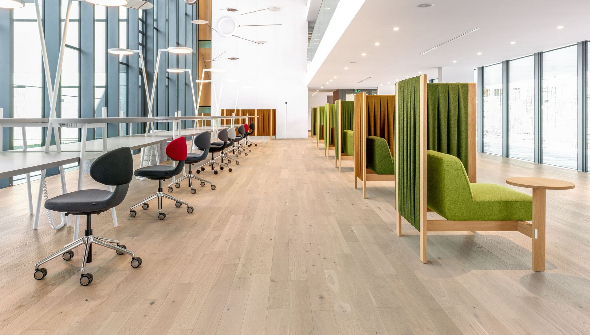 Unsere Referenzen im Bereich Office: Eine Bandbreite von Einrichtungsmöglichkeiten und -lösungen in der Büro- und Arbeitswelt, umgesetzt mit Girsberger Produkten.