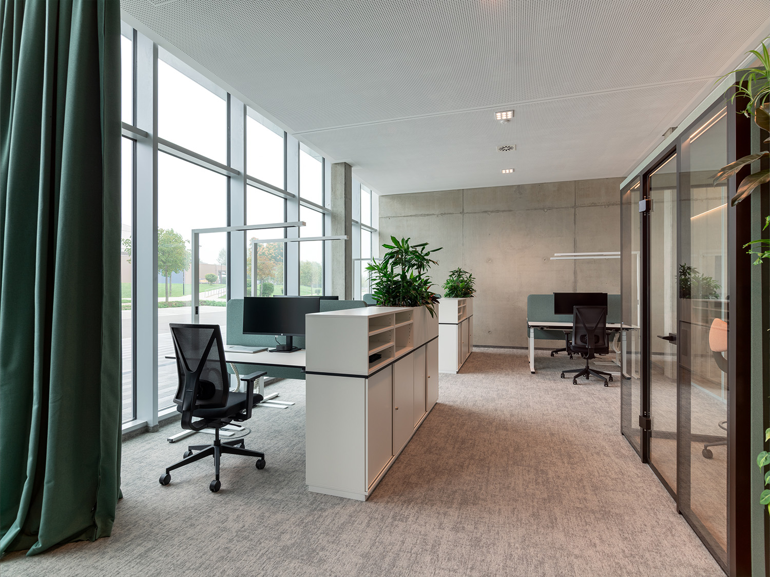 Rein digitales Arbeiten, eine Clean-Desk-Policy und Desksharing sind zentrale Elemente des neuen Arbeitskonzepts, das von einem umfassenden Change-Management-Prozess begleitet wurde. Girsberger durfte zur Möblierung bewährte Drehstuhlmodelle wie Yanos Flex, Simplex 3D und den Diagon Executive in Sonderausführung beisteuern.