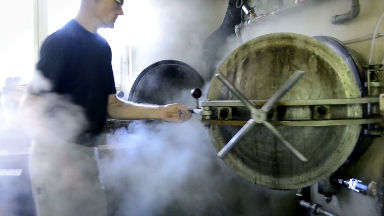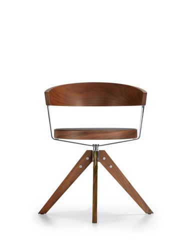 Eine Besonderheit des Stuhls ist die Lehne aus dampfgebogenem Holz. Ein U-förmiger Sitz- und Lehnenträger fungiert als flexibler Torsionsstab und ermöglicht eine komfortabel wippende Bewegung von Sitz und Lehne - ganz ohne aufwendige Neigemechanik.