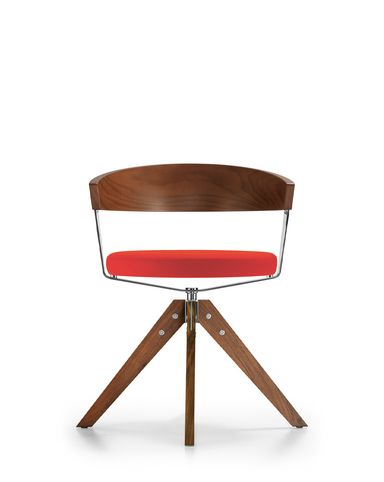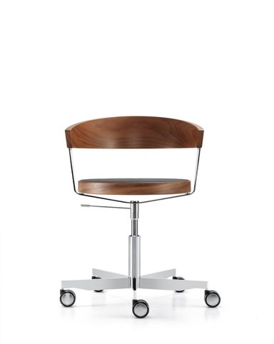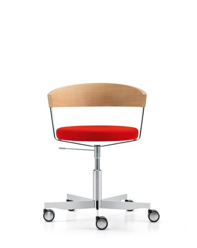 Der Sitz besteht auf einem gepolsterten Sitzbrett oder einem Formholzring mit transparenter Netzbespannung, dampfgebogenes Massivholz bildet die Lehne. G 125 gibt es mit Holzfusskreuz oder mit Stahlfusskreuz auf Rollen.