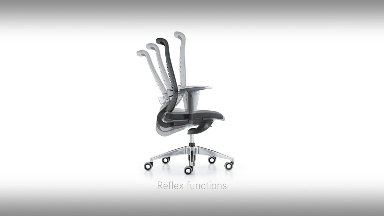 Daneben erfüllt der Drehstuhl alle ergonomischen Anforderungen wie individuelle Anpassung der Sitzhöhe, Sitztiefe, Sitzneigung, einstellbare Armlehnen sowie optionale Nackenstütze und Lumbalstütze. Vor allem durch das Zusammenspiel von Netz und Lamellen passt sich die Rückenlehne der individuellen Anatomie der Benutzerin und des Benutzers perfekt an und stützt den Rücken gezielt ab.