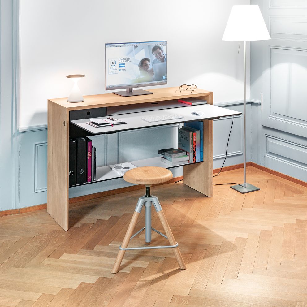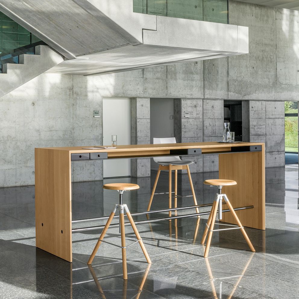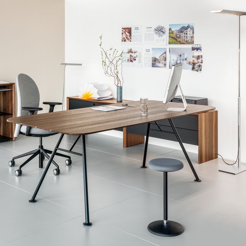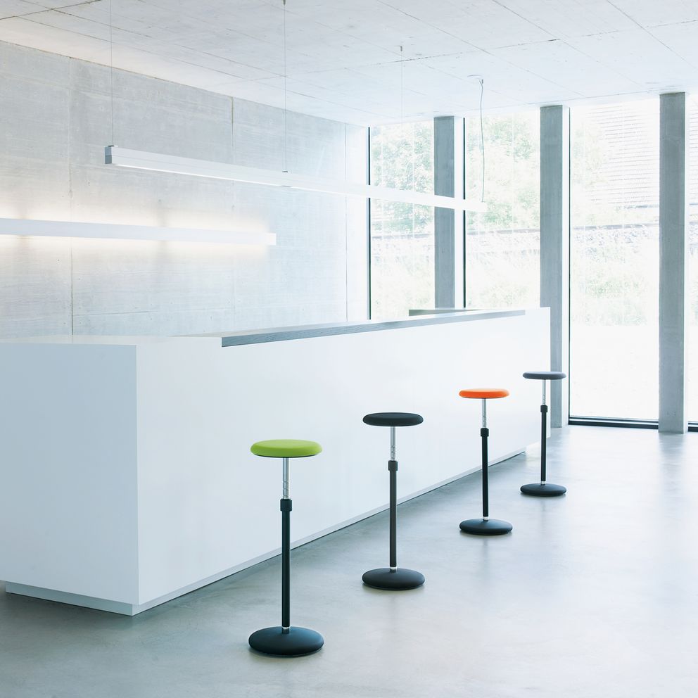 Im Büro sind Hocker platzsparend, leicht zu bewegen und ergänzen die Sitzmöglichkeiten ad hoc im Raum. Zum Beispiel am Arbeitsplatz als schnelle Lösung für das Hinsetzen im Gespräch, als Stehhilfe bei Präsentationen oder an einem Steharbeitsplatz, wo sie als Stehsitz den Körper vom eigenen Gewicht kurzzeitig entlasten.