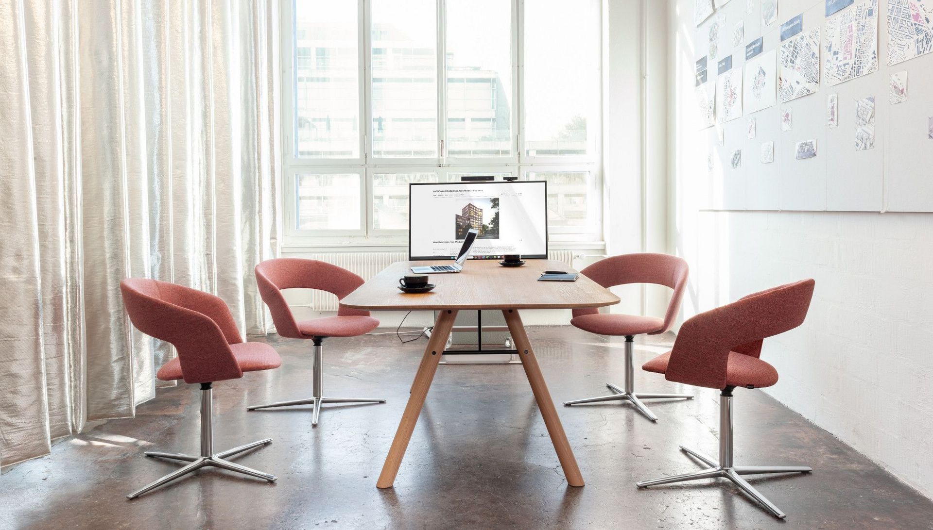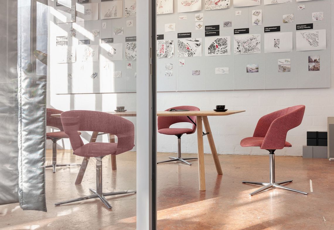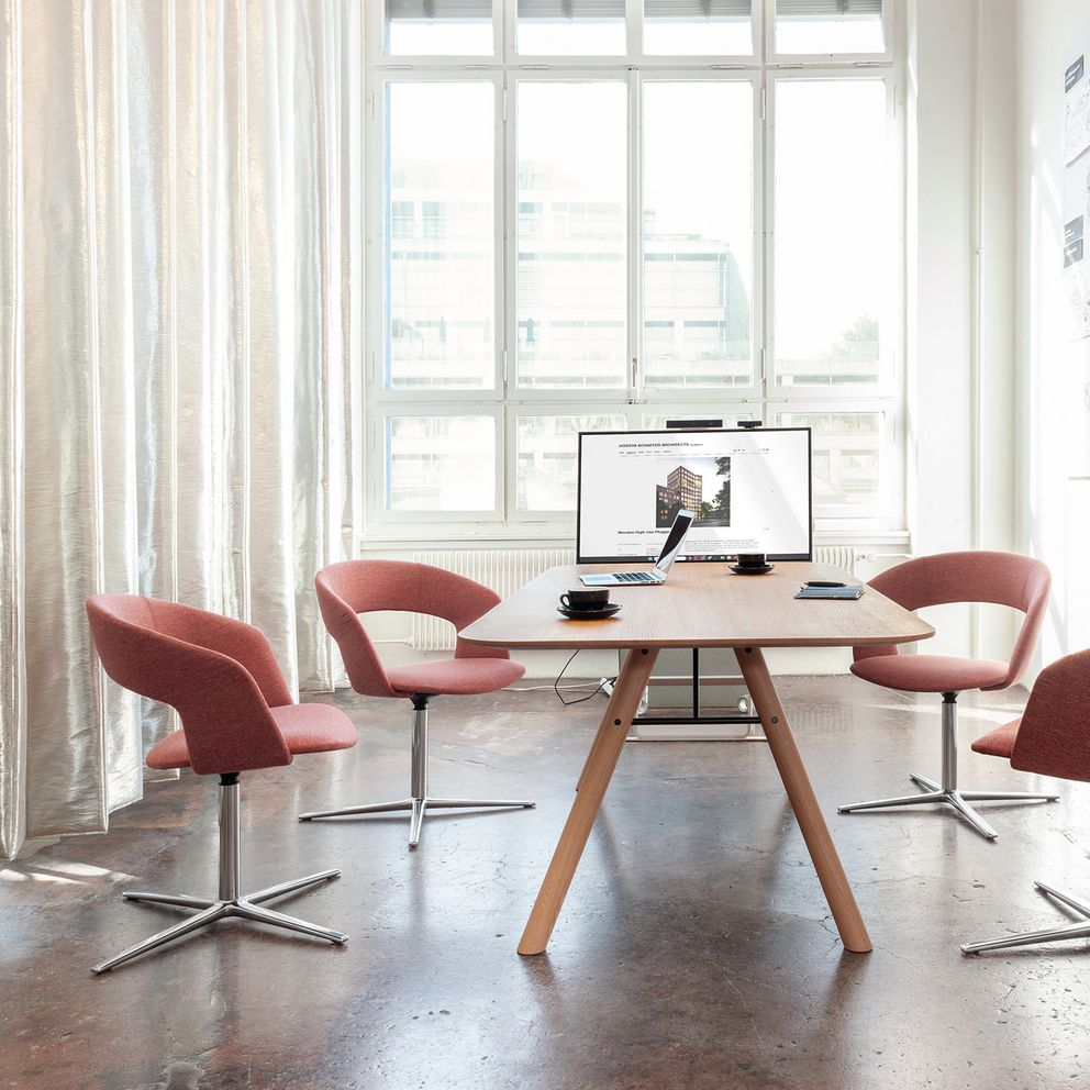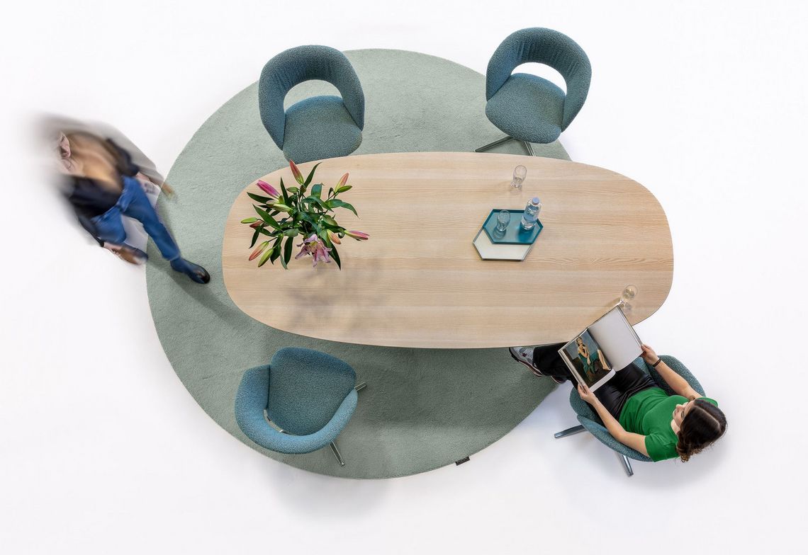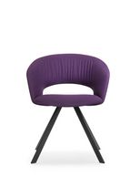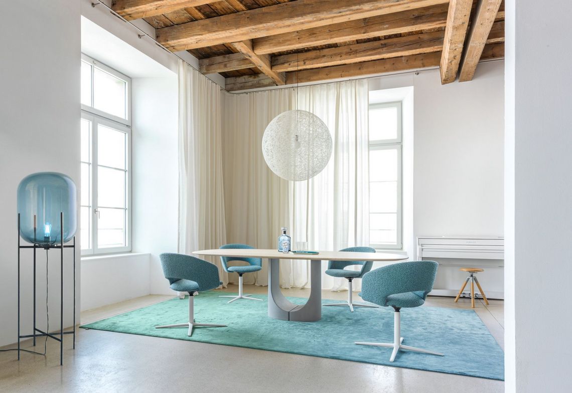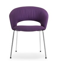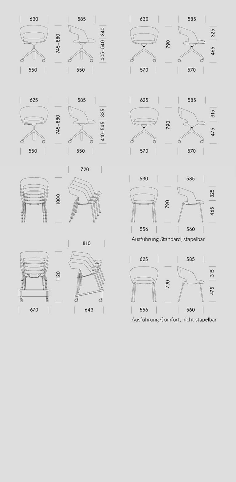 Visuell prägnant: Die Rundform bestimmt das Bild. Optional gibt es zwei Rückengrössen und Polsterausführungen: Calina mit einfacherer Polsterausführung, schmalerer Rückenlehne und dem dadurch entstehenden Vorteil der Stapelbarkeit. Oder in der Komfortausführung mit grossflächigerer Rückenlehne, dickerem und senkrecht verlaufendem Faltenwurf des Bezugsstoffes. Sie sorgt für ein besonders weiches und bequemes Sitzgefühl – auch für ein langes und gemütliches Beisammensein am Esstisch.