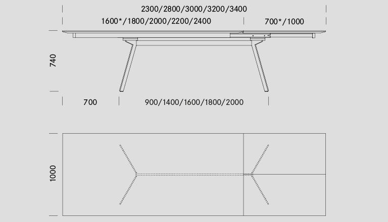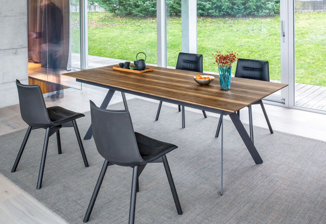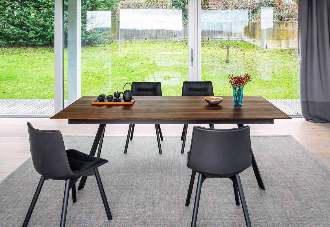 Dank der synchron geführten Auszugstechnik wird die Tischplatte auf beiden Seiten gleichermassen erweitert. Die 28 mm starke Tischplatte sowie die Verlängerungsplatte werden aus einem Blatt hergestellt, sodass die Holzmaserung durchgehend verläuft. Die Synchronauszugstechnik ist identisch mit der von unserem Auszugstisch Bela.