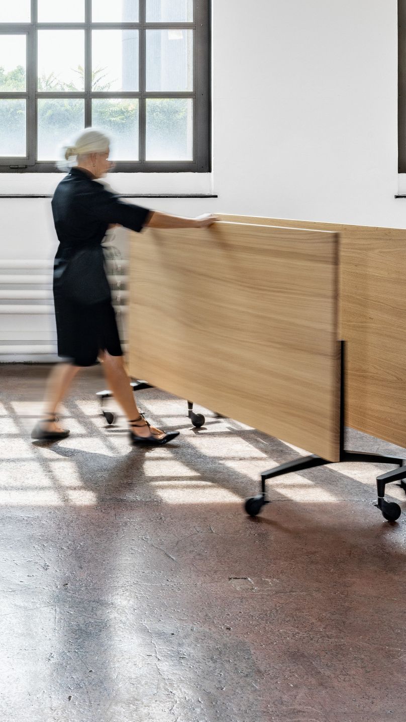 Weil Alteo ein Girsberger Tisch ist, verfügt er über eine hochwertige Massivholztischplatte – wahlweise in Eiche oder Nussbaum. Gleichzeitig ist er ein leicht beweglicher Tisch auf Rollen, der schnell und bequem dort sein kann, wo er gebraucht wird. Darüber hinaus ist seine Tischplatte klappbar, damit er platzsparend bereitgestellt und bevorratet werden kann.