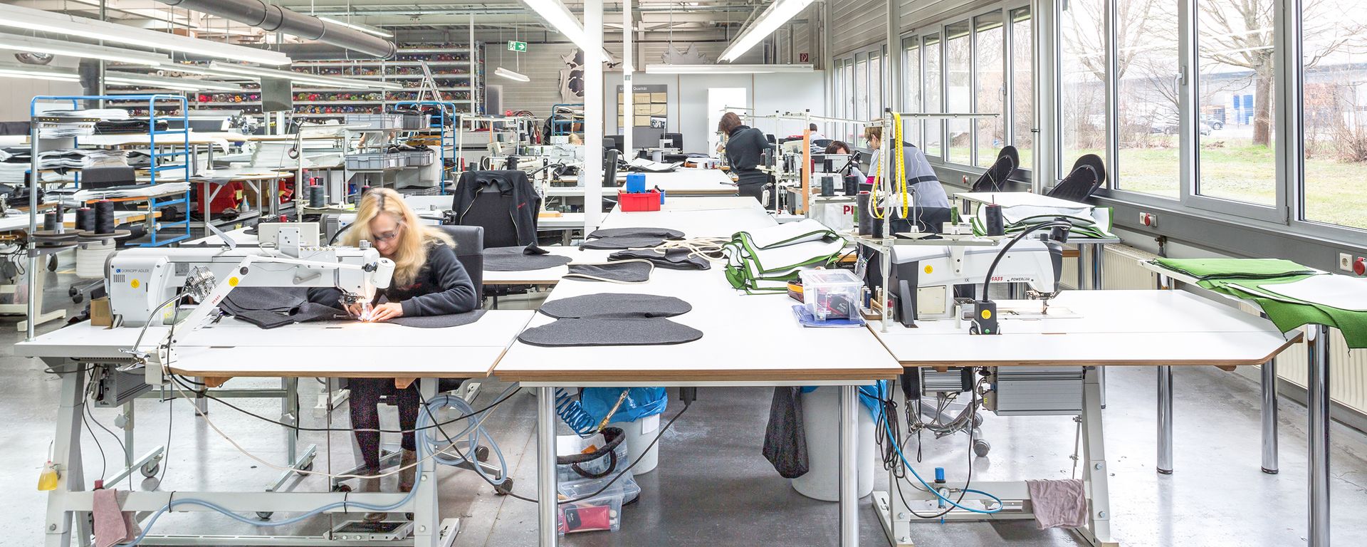 Die Fertigungsbereiche umfassen im Wesentlichen Zuschnitt, Näherei, Polsterei und Endmontage.