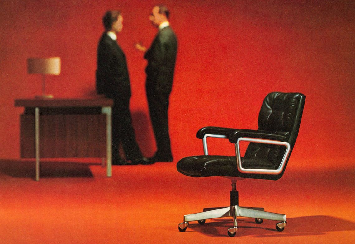 Gesundes und funktionsgerechtes Sitzen: Modell „Eurochair 5600“, ein Stuhl von Fritz Makiol, der über alle Aspekte eines ausgereiften Bürodrehstuhls verfügte.