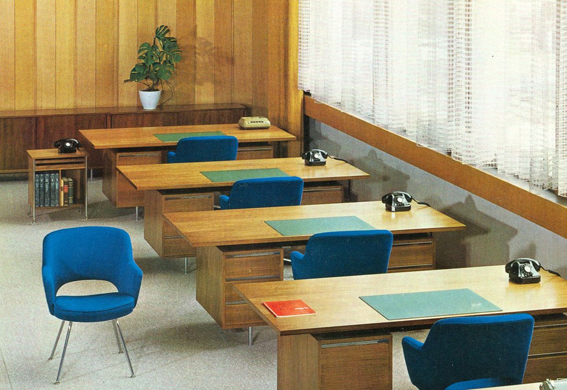 Durch eine Zusammenarbeit mit Knoll International kamen auch internationale Einflüsse hinzu. Ausgewähltes Mobiliar – nach Entwürfen von Florence Knoll und Eero Saarinen – wurde für den europäischen Markt in Lizenz gefertigt.