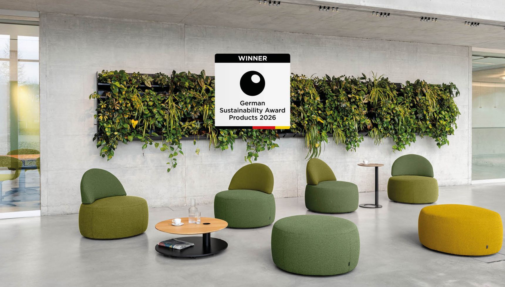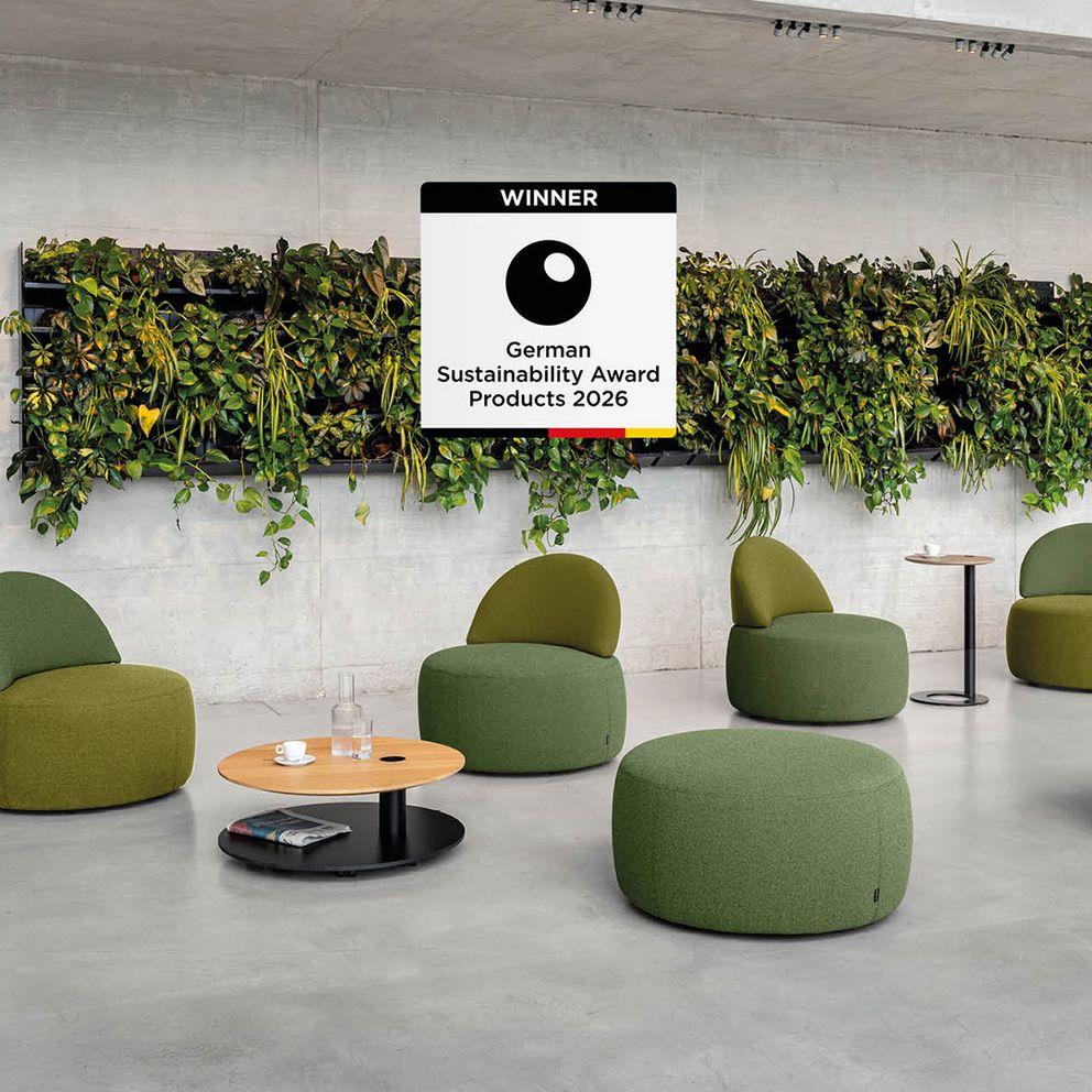 Girsberger’s soft seating programme Incycle was named winner in the ‘Products’ category of the German Sustainability Award 2026. The high-ranking jury of experts recognised products that make particularly effective contributions to sustainable transformation in one of the five central transformation areas of climate, resources, nature, society and value chain. The jury was impressed by the Incycle seating programme’s concept, which is geared towards the circular economy. The reuse of materials was defined as the clear focal point in the early development process. Depending on the module, the pouf elements consist of between 90 and 95% used and recycled materials.