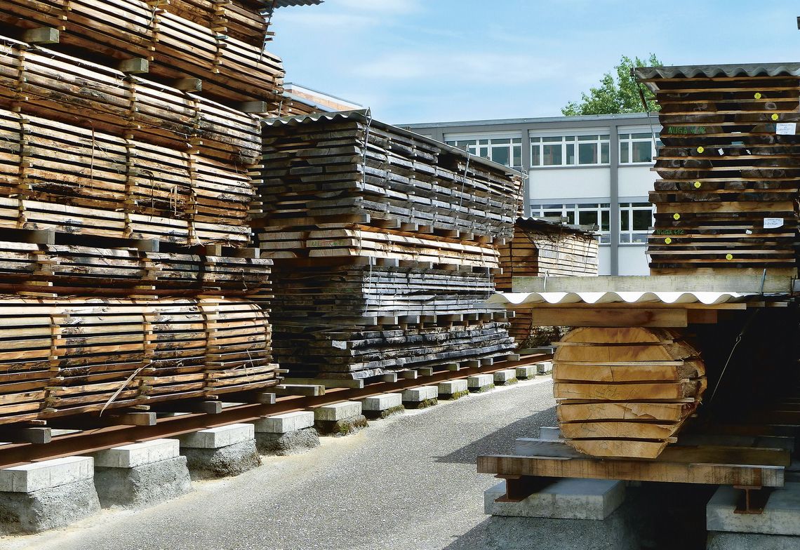 The trunks are stored outdoors for at least two years. This period can be even longer depending on the type of wood and size of the trunk, or the thickness of the boards. The freshly sawn timber is initially covered to protect it from direct sunlight and the weather, and is only exposed completely after a certain amount of time.