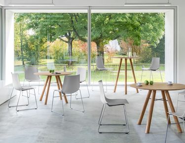Comfortable solutions for break zones, catering and recreation rooms are important, since informal discussions in particular can generate important stimuli. Girsberger tables and chairs can be optimally combined for such applications.