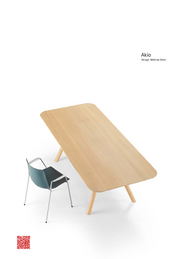 The most striking design feature of Akio is the steel struts, which give the angled solid wood legs greater stability and thus enable larger table top formats – either round, oval or rectangular – up to 320 cm in length. The edges of the solid wood tabletops are bevelled outwards, helping to create an appearance of lightness.
