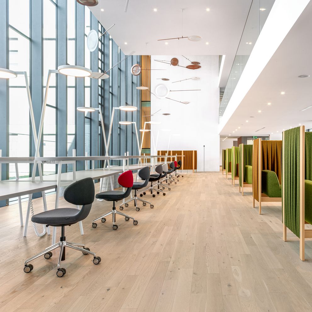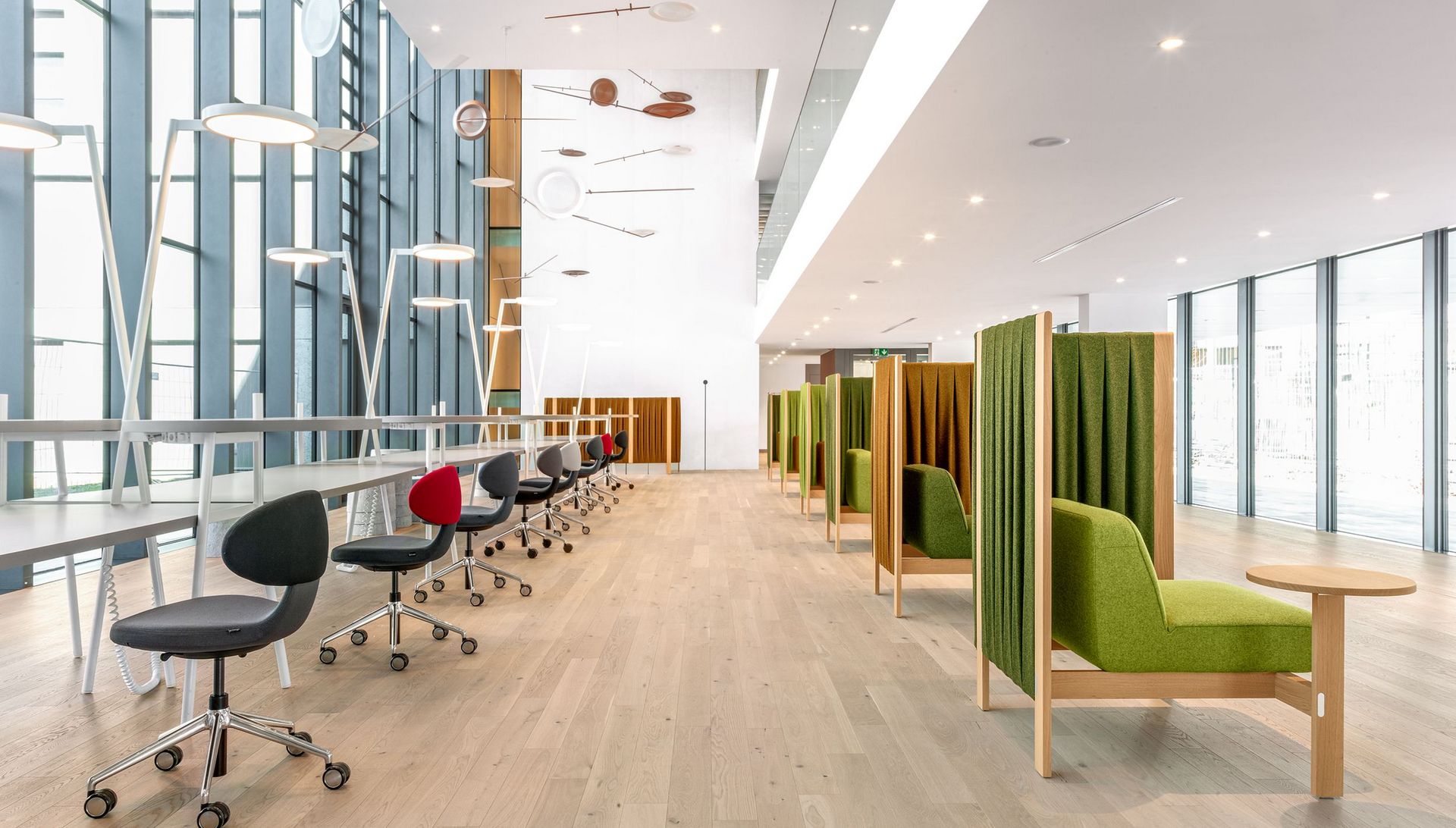 L'aménagement des zones lounge et de détente du nouveau bâtiment du campus, réalisé sur la base d'un concours d'architecture ouvert aux étudiants, a été conçu par atelier oï et meublé avec divers modules du programme de business lounge Velum. Les locaux spacieux sont ainsi structurés et assurent aux étudiants des espaces de détente de qualité, leur permettant de s’isoler du bruit et des regards.