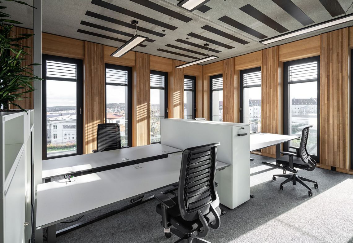 Le nouvel immeuble de bureaux offre un environnement de travail qui répond aux normes les plus modernes et stimule l’interaction. Les espaces de travail ouverts et flexibles sont propices à une collaboration étroite et à la créativité au sein des équipes. Des bureaux réglables en hauteur et des sièges de bureau ergonomiques ainsi que de nombreux espaces de réunion permettent de varier les postures et de créer un climat de travail agréable.