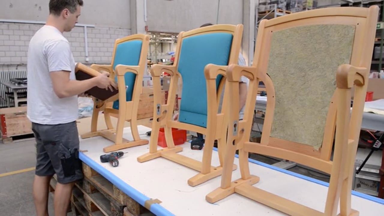 Restauration des sièges de la salle de concert classée avec optimisation de la résistance au feu et de l'acoustique. 891 fauteuils rabattables ont été rénovés et optimisés.