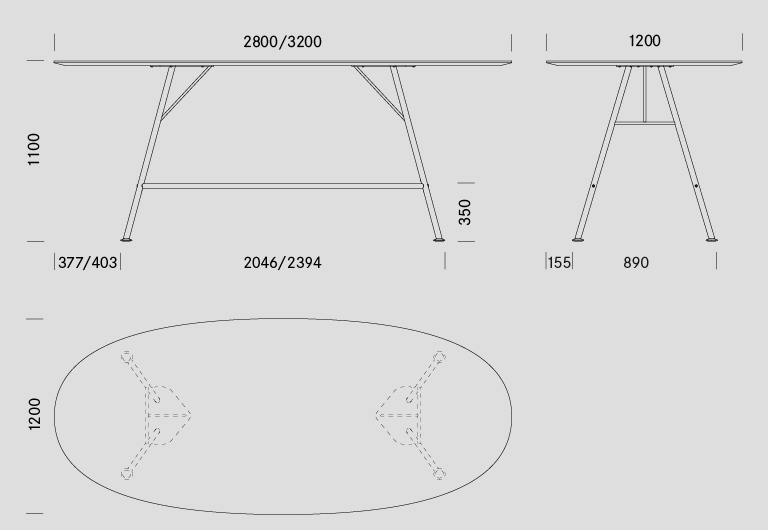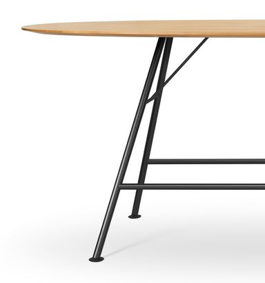 Table haute Akio: les supports longitudinaux renforcent la stabilité et font office de repose-pieds