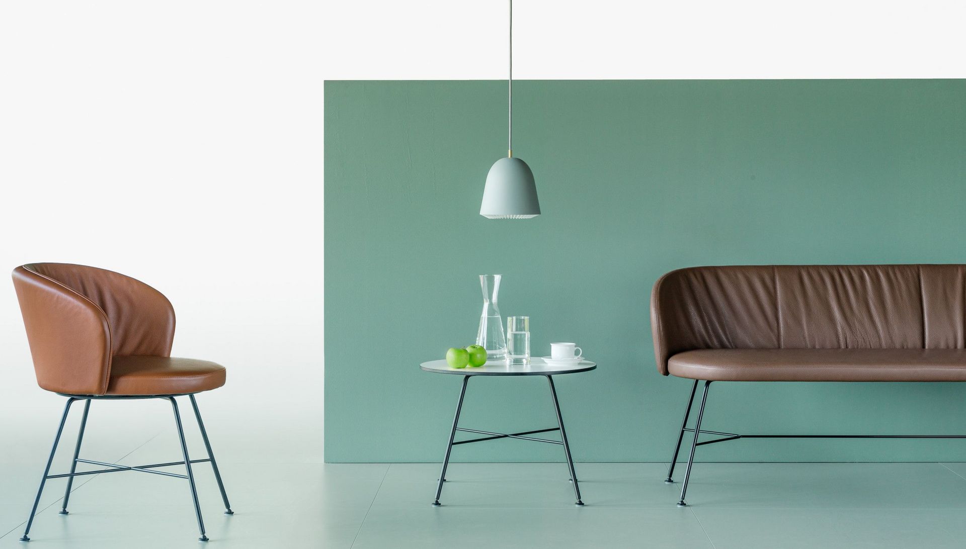 Les banquettes biplaces avec quatre pieds en bois ou en acier complètent la gamme de chaises et assurent, malgré un faible encombrement au sol, une assise confortable pour deux personnes. Les chaises et les banquettes biplaces sont aisément combinables entre elles en fonction des besoins pour former des ensembles attrayants.