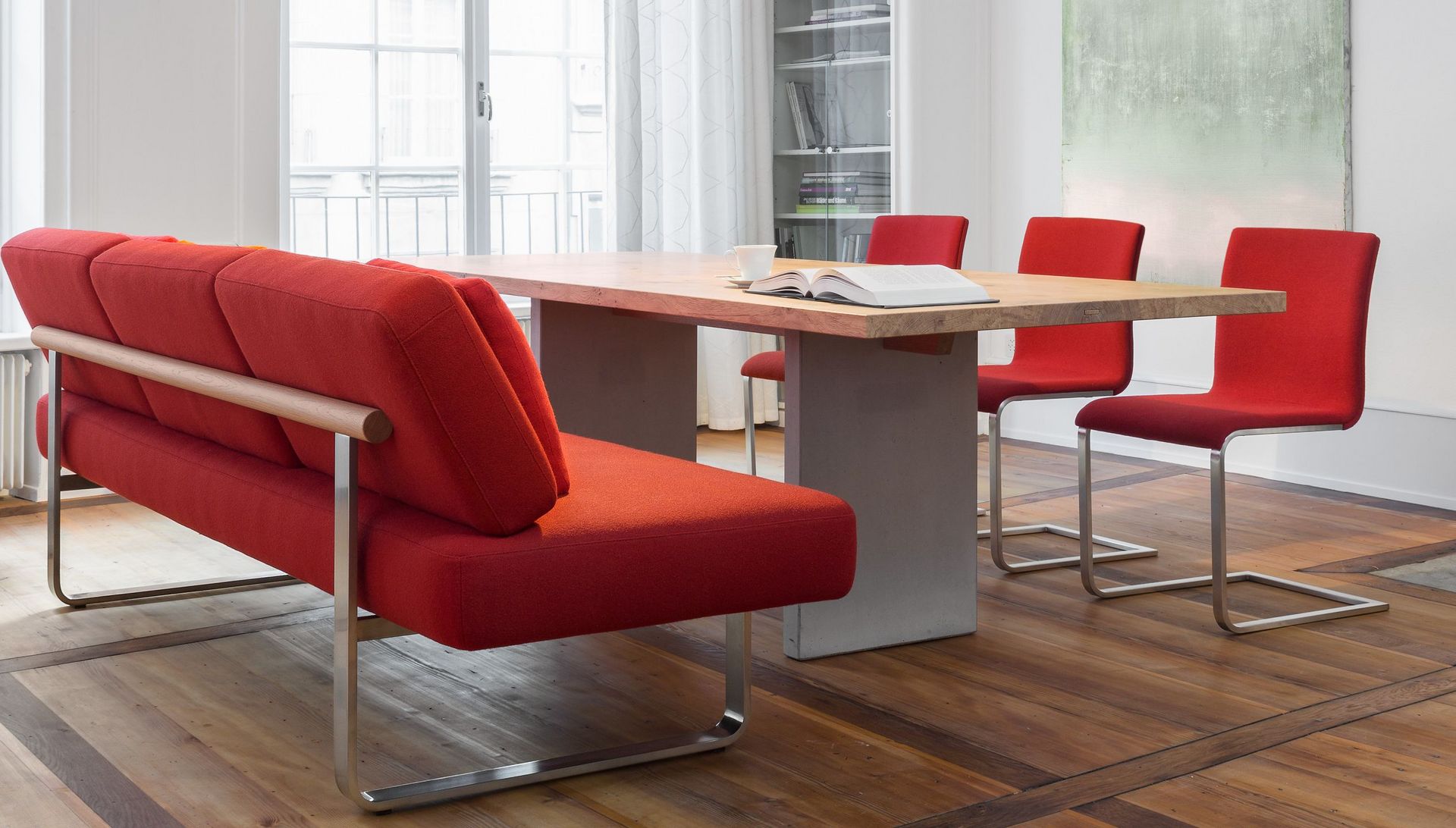 Avec "Joline", Mathias Seiler a conçu une banquette qui, grâce à des coussins doux et moelleux, assure une assise des plus confortables autour de la table à manger.