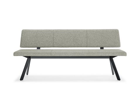 De Barra-tafel combineert een eenvoudige vorm met constructieve logica. Het schijnbaar zwevende tafelblad rust op een massief houten balk. Naast de ondersteuning aan het blad, herbergt het ook de twee paar poten aan de voorkant. De tafel vormt een ideale combinatie met de strakke en elegante Carim-zitbank. Net als de Barra heeft ook de Carim schuin aflopende poten van platstaal, waardoor ze goed op elkaar zijn afgestemd. De zitbank is zowel verkrijgbaar met als zonder rugleuning.