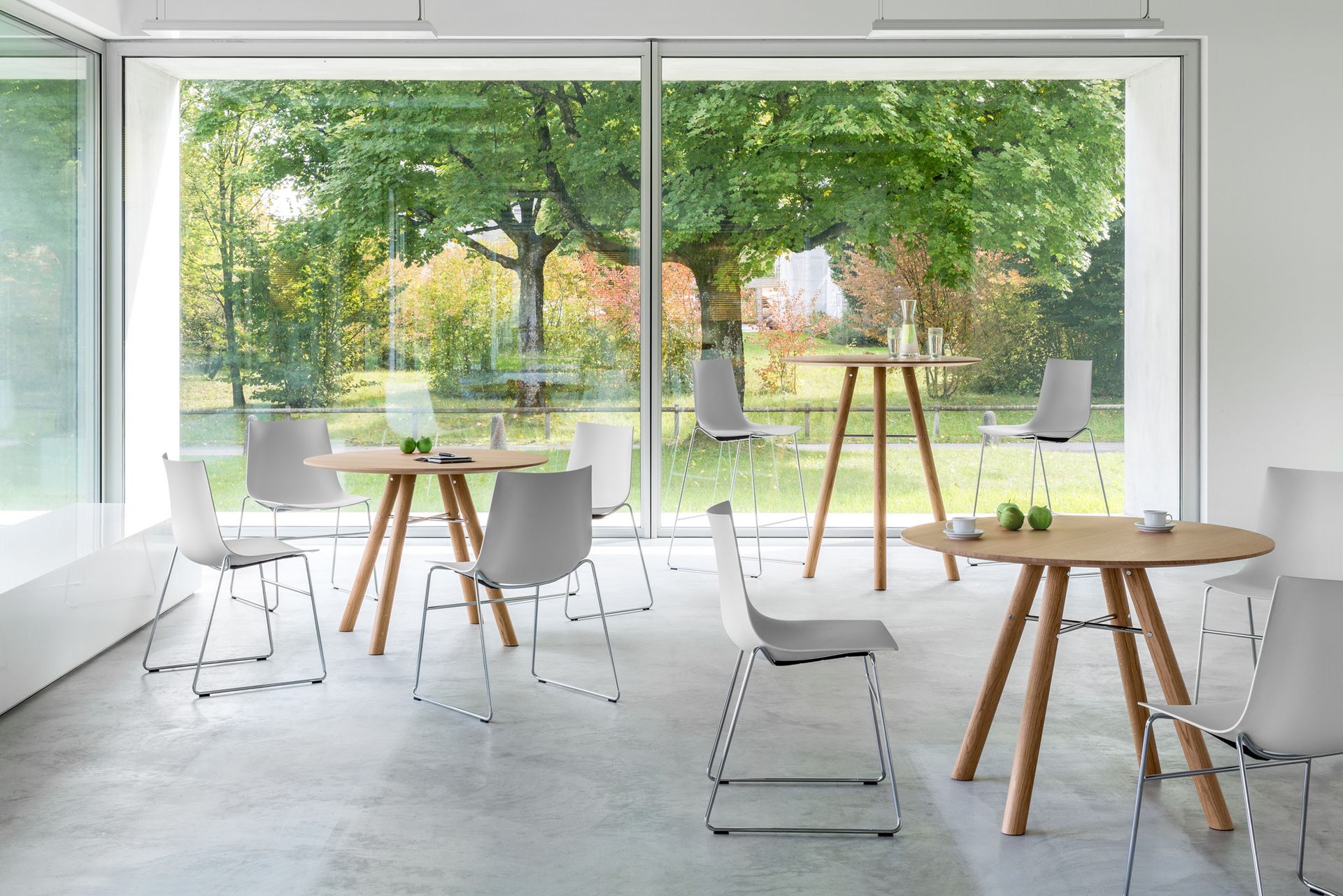 Comfortabele oplossingen voor pauzezones, restauratie en verblijfsruimten zijn belangrijk – omdat juist tijdens informele gesprekken belangrijke impulsen ontstaan. Tafels en stoelen van Girsberger kunnen voor deze toepassingen optimaal worden gecombineerd.