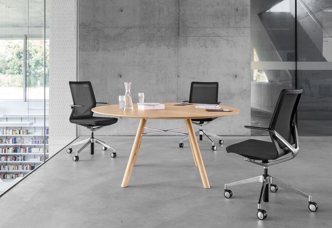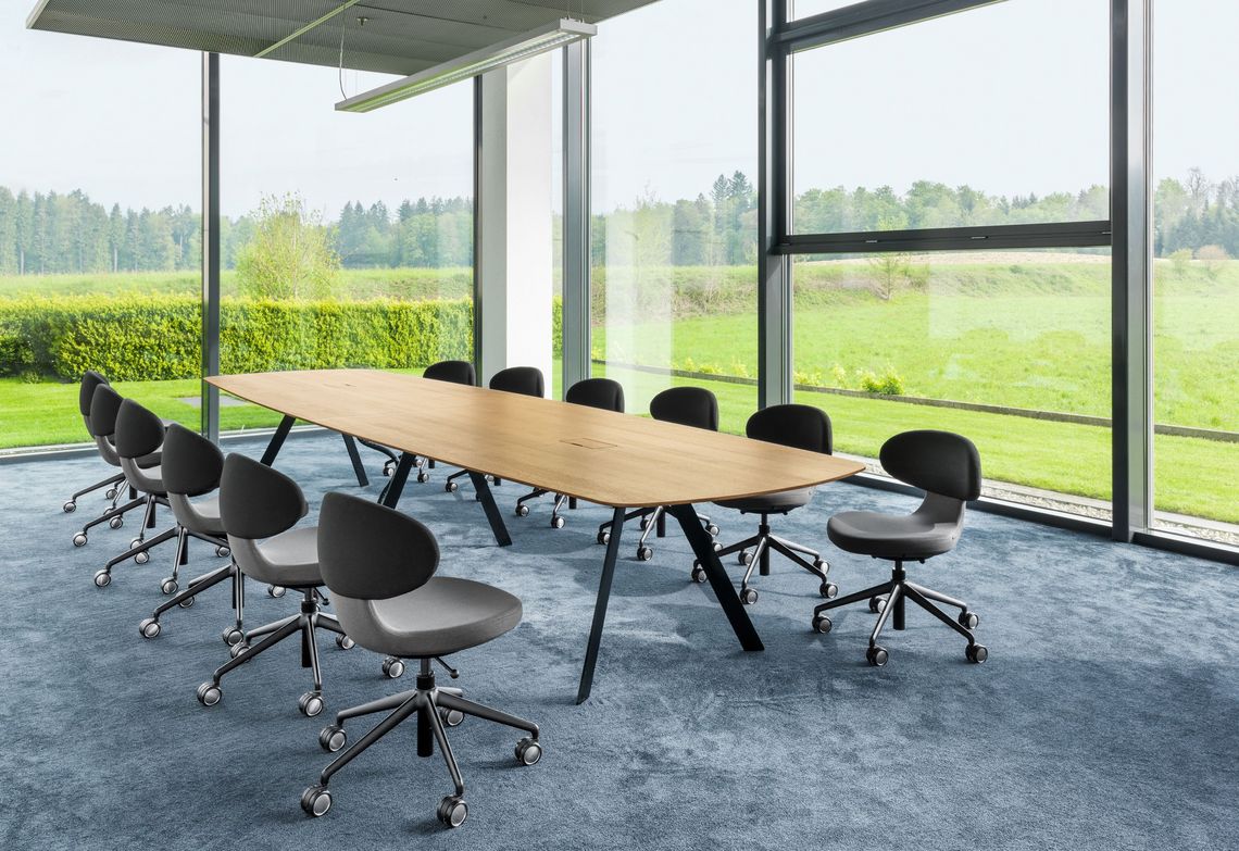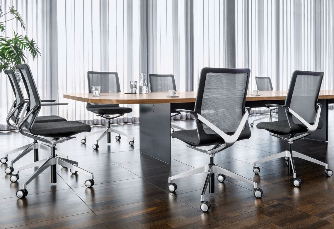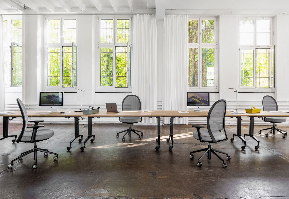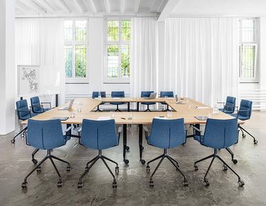 Comfort en flexibiliteit mogen niet worden opgeofferd tijdens teamwork en trainingen. Verschillende bureaustoelmodellen met een onderstel op wielen zijn hiervoor geschikt. Deelnemers kunnen snel groepen vormen en zijn mobiel op hun stoel.