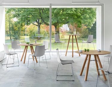 Comfortabele oplossingen voor pauzezones, restauratie en verblijfsruimten zijn belangrijk – omdat juist tijdens informele gesprekken belangrijke impulsen ontstaan. Tafels en stoelen van Girsberger kunnen voor deze toepassingen optimaal worden gecombineerd.