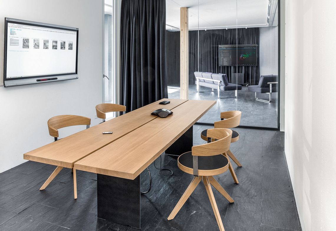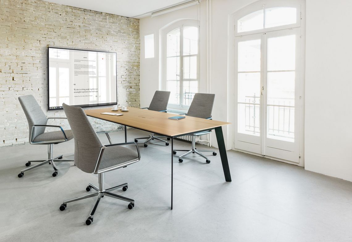 Voor presentaties of langere meetings met grotere groepen zijn aparte ruimten met geschikt meubilair en navenante technische apparatuur nodig. Elektrificatie van de tafelinstallaties, sideboards en de ergonomische conferentiestoelen vormen een essentieel onderdeel van de inrichting. Girsberger maakt oplossingen mogelijk voor alle besprekingsruimten tot en met de inrichting van exclusieve en representatieve bestuurskamers.
