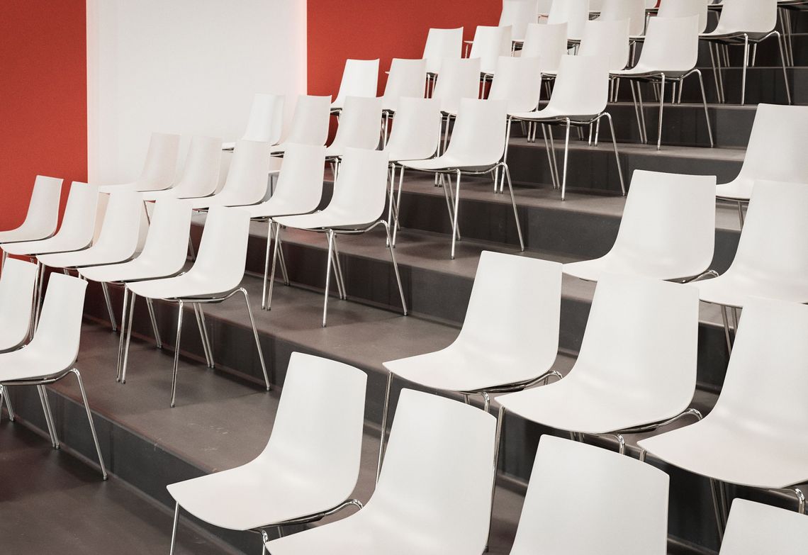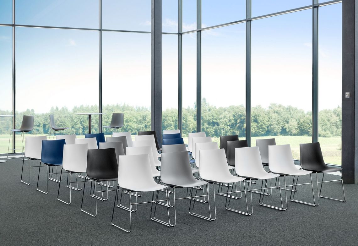 Overal waar veel mensen samenkomen en er een komen en gaan heerst, hebben gemakkelijke bewegelijkheid, verstelbaarheid en aanpassing aan de situaties prioriteit bij de meubilering. Ook de mogelijkheid van bestoeling in rijen, het stapelen en opslaan van stoelen vormen vaak vereisten voor communicatie- en evenementenruimten.