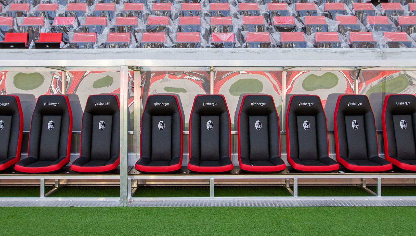 Voor het nieuwe Europa-Park-stadion van SC Freiburg, gepland door HPP Architekten, ontwikkelde en bouwde Girsberger 42 stoelen voor de trainer- en spelersbanken volgens de wensen van de klant. Dankzij een hoogwaardige stofferingsopbouw bieden de stoelen een bijzonder comfort, inclusief geïntegreerde, individueel te bedienen zitting- en rugverwarming. De zetels werden elk uitgevoerd in de corporate identity-kleuren van de voetbalclub en met geborduurde logo's.