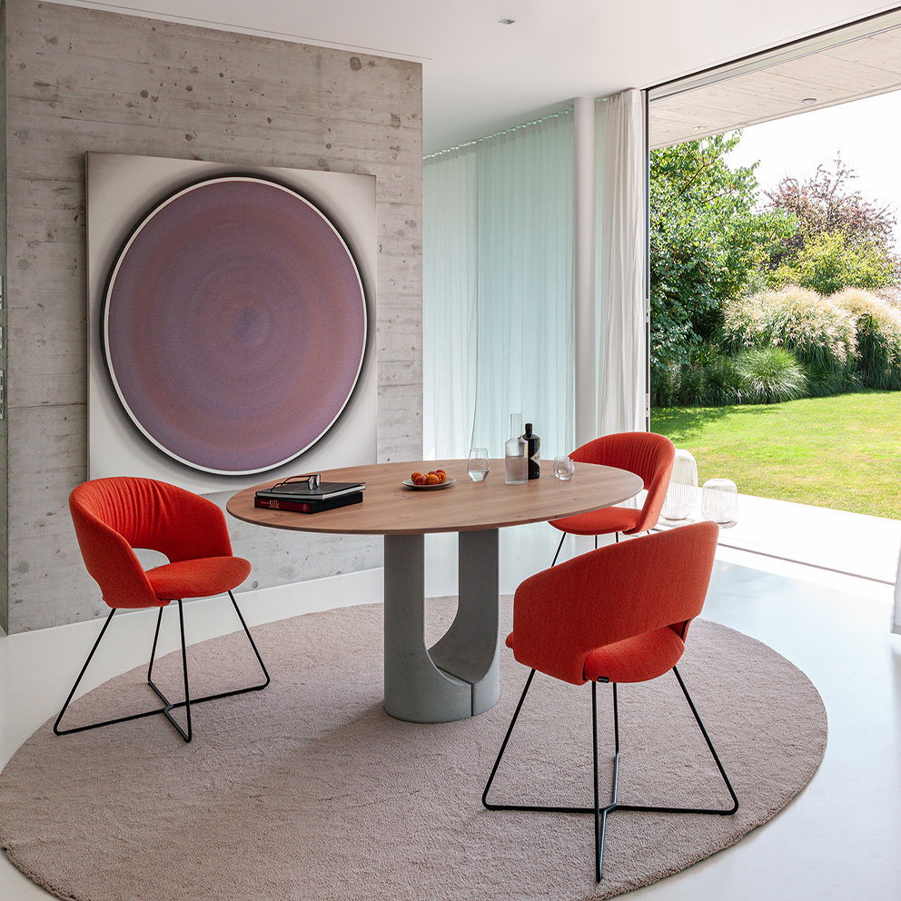 Afhankelijk van het model heeft een ronde tafel een centrale poot of een vierpootsonderstel. De gebruikers bepalen zelf hoeveel personen er aan een ronde tafel kunnen zitten. Girsberger biedt ronde tafels aan met diameters van 80 cm tot 180 cm. Voor zes tot zeven personen en een comfortabele stoelindeling adviseren wij een tafeldiameter van 160 cm.